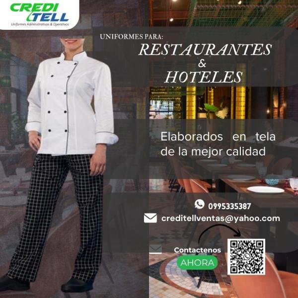 En CREDITELL nos dedicamos a la confección de uniformes de excelente calidad para el sector gastronómico y hotelero. Elaboramos prendas como mandiles, delantales, blusas, camisas, cofias, chaquetas, chaquetillas, faldas, pantalones, entre otras.